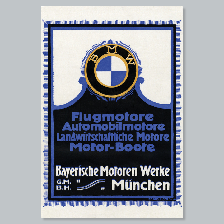 Shortly after its foundation, Bayerische Motoren Werke began to focus on impressive poster art. Renowned poster artists created characteristic designs to accompany the launch of motorcycles and cars and to illustrate motor racing victories. The era of artistically designed posters came to an end in the late 1950s. The advent of photography radically changed the face of advertising. We celebrate four decades of poster art in the service of Bayerische Motoren Werke on a large billboard in the BMW Museum.