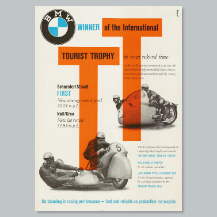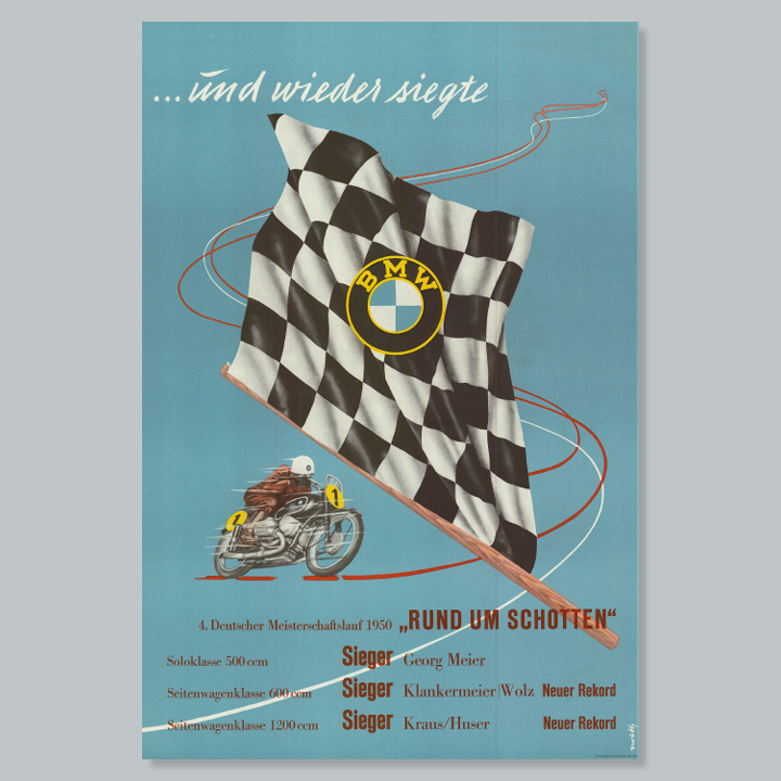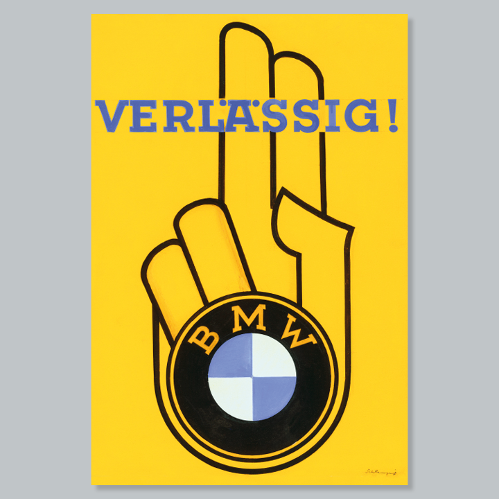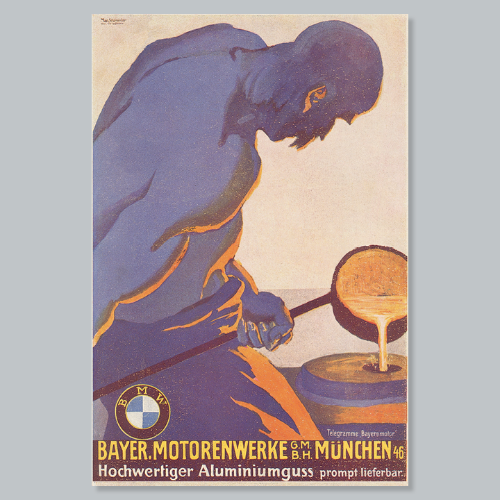Shortly after its foundation, Bayerische Motoren Werke began to focus on impressive poster art. Renowned poster artists created characteristic designs to accompany the launch of motorcycles and cars and to illustrate motor racing victories. The era of artistically designed posters came to an end in the late 1950s. The advent of photography radically changed the face of advertising. We celebrate four decades of poster art in the service of Bayerische Motoren Werke on a large billboard in the BMW Museum.